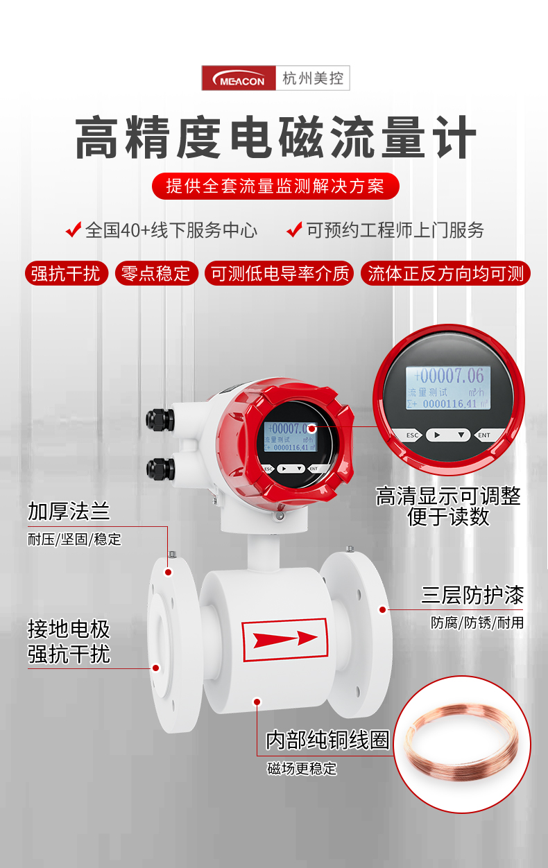 高精度电磁流量计_强抗干扰_正反方向可测_浆液_低电导率