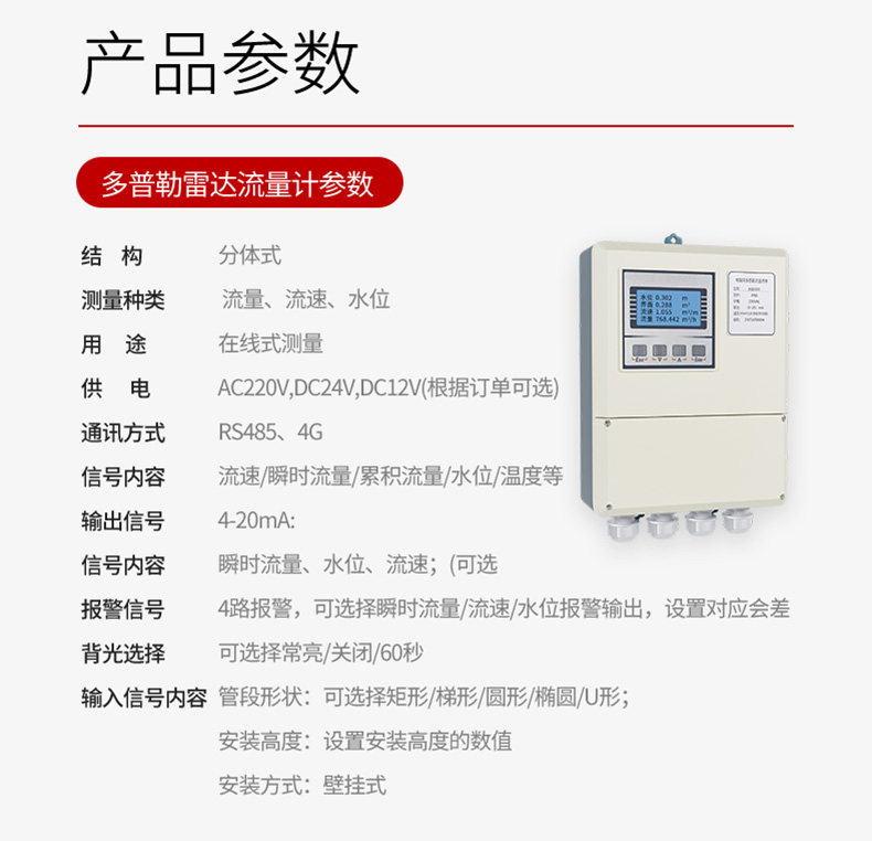 流速:3%±0.01m/s 液位:0.2%±0.01m