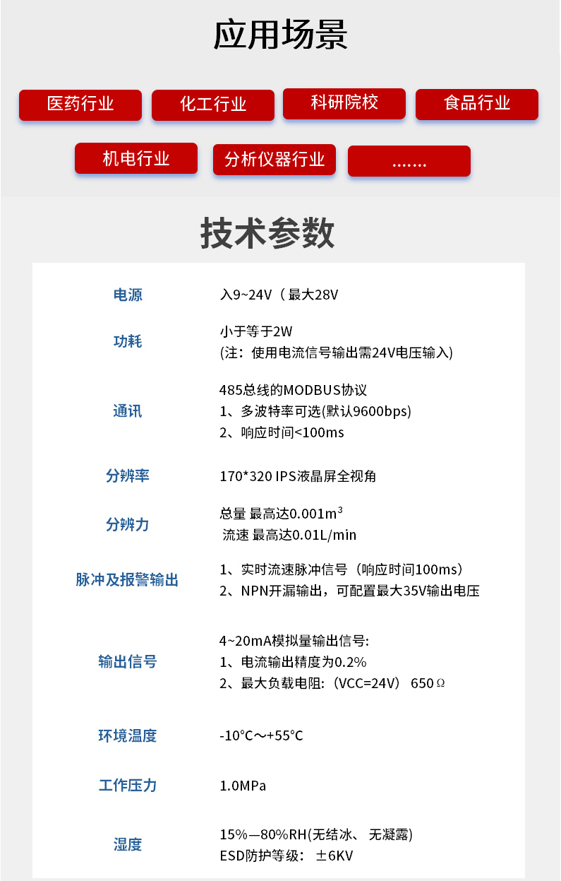 FTM200 型气体流量表装置(以下简称装置)是针对各个场所的气体流速及累计流量的计量,融合多种抗干扰措施的兼容设计的;具有多种信号输出,能通过通讯接口利用网络实现管理功能;本产品具有体积小,重量轻, 测量精度高等特点。在性能、安装、维护方面有极大的优越性及稳定性,可广泛应用于医疗器械、石油燃气、化工、能源等多方面气体检测。