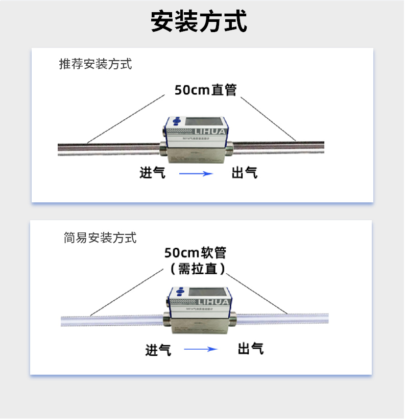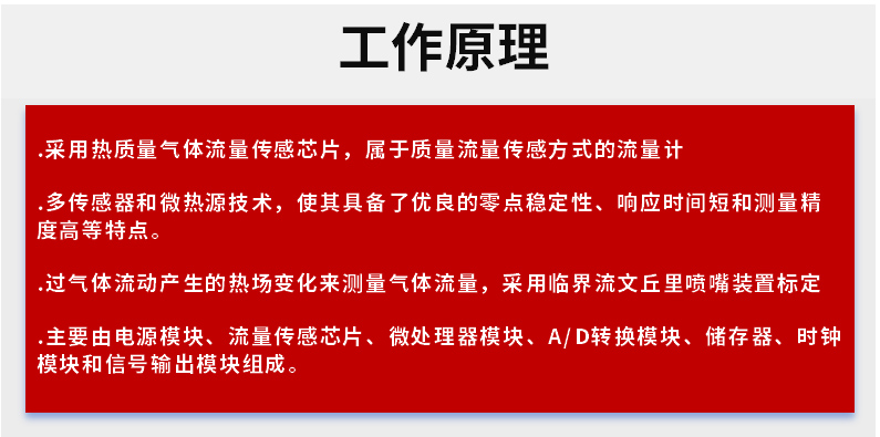 热式气体质量流量计是基于热扩散原理而设计的,该仪表采用恒温 差法对气体进行准确测量。具有体积小、数字化程度高、安装方便,测量准确等优点。