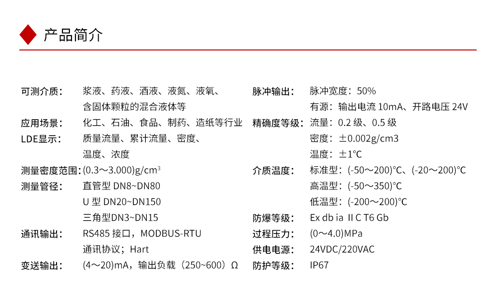 可直接测量封闭管道内流体的质量流量、介质的密度和温度。可广泛应用于化工、石油、食品、制药、造纸等行业。咨询热线:400-152-1718