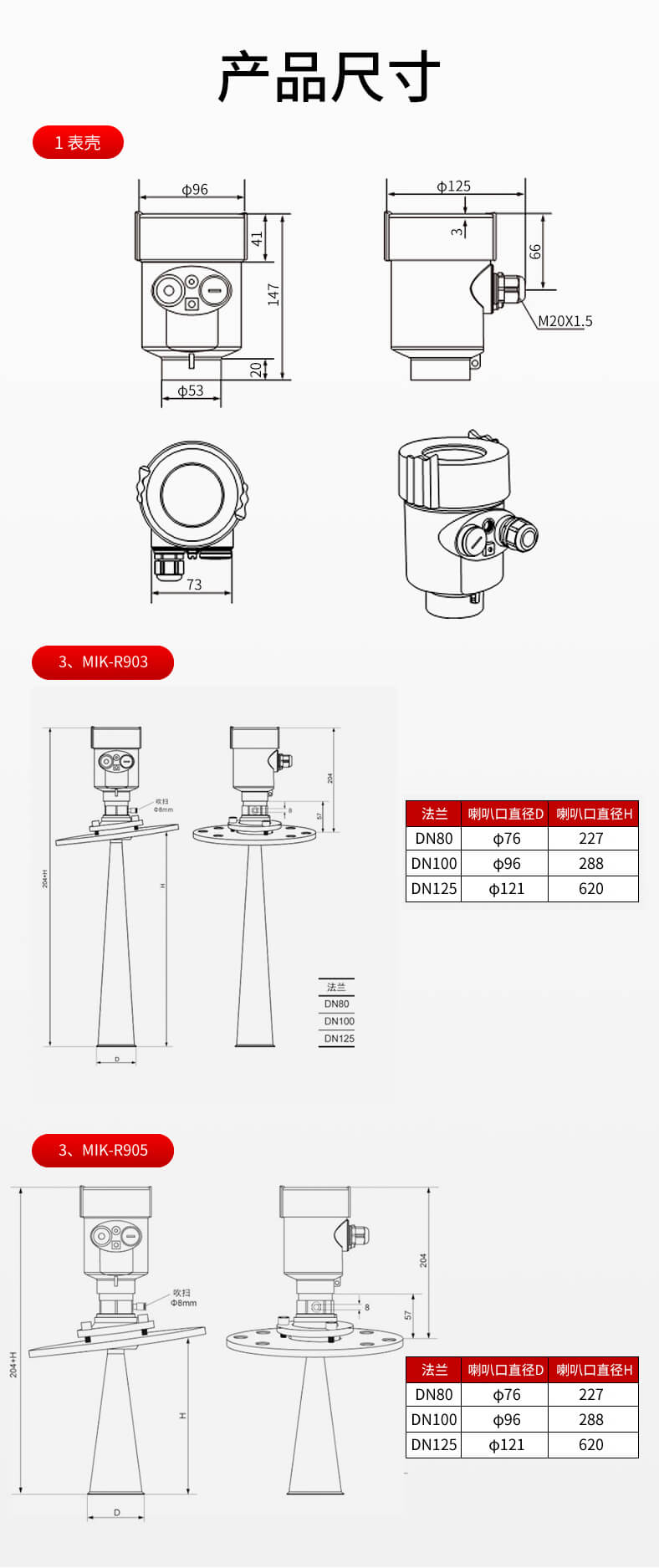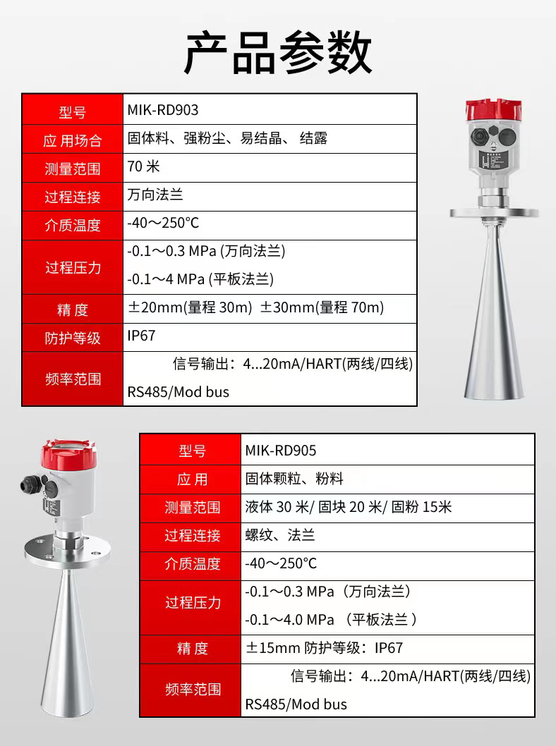 MIK-RD908/909雷达液位计天线发射极窄的微波脉冲