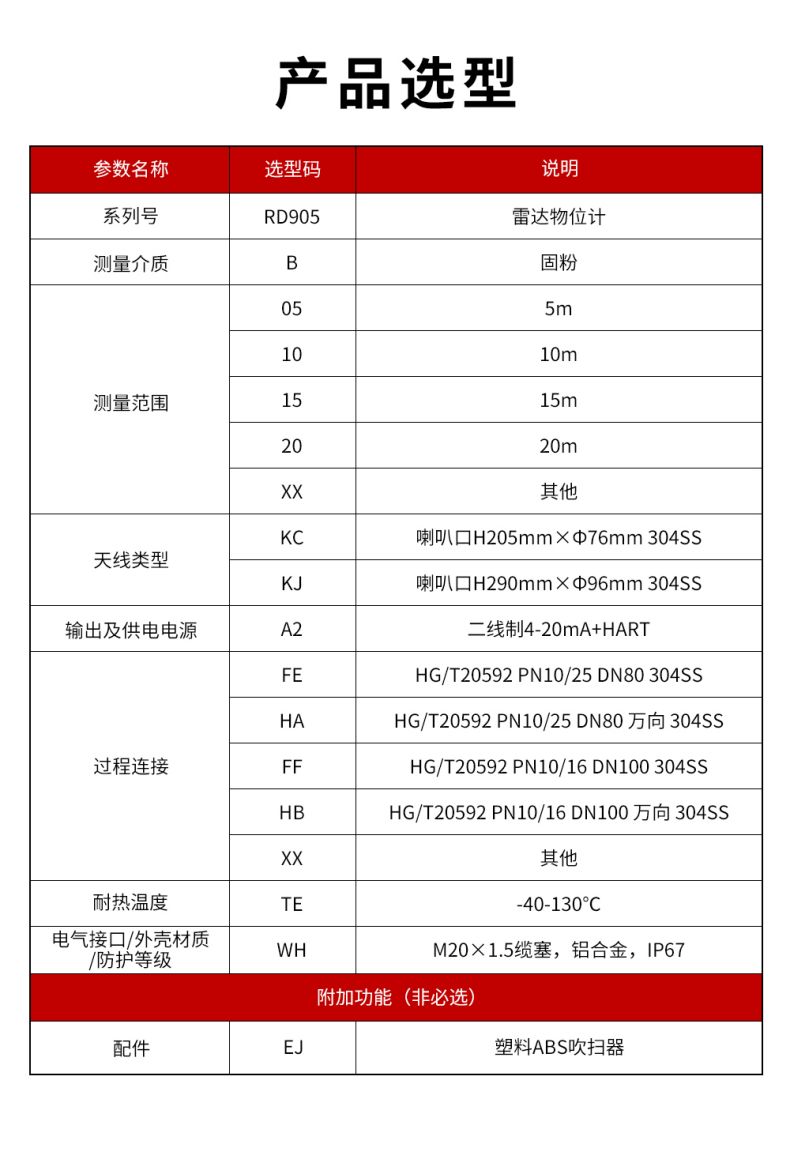 26GHz信号输出:4...20mA/HART(两线/四线) RS485/Mod bus
