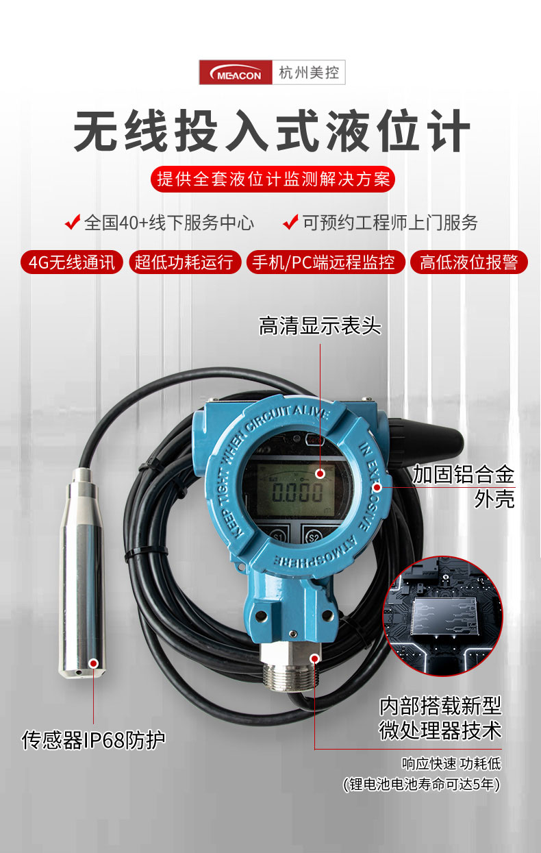 投入式液位变送器由高性能扩散硅压阻式压力传感器作为测量元件...